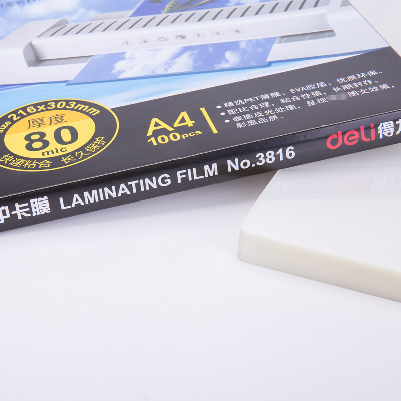 • 得力A4 80MIC 塑封膜50张/盒 3816