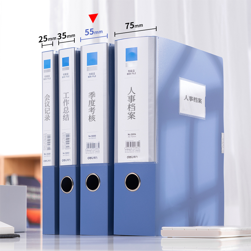 得力(deli)1只55mmA4塑料档案盒 加厚资料文件盒 财务凭证收纳盒办公用品5683