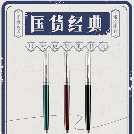 英雄(HERO)钢笔经典007 黑色暗尖铱金钢笔墨水笔单支装 F尖