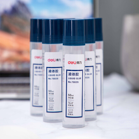 得力(deli)50ml刷片胶头液体胶 高粘度可水洗透明胶水 单支装7302S