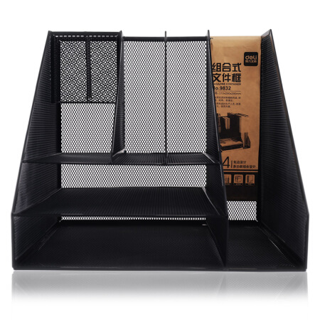 得力(deli)多功能金属网材组合式文件框 分层收纳 黑色9832