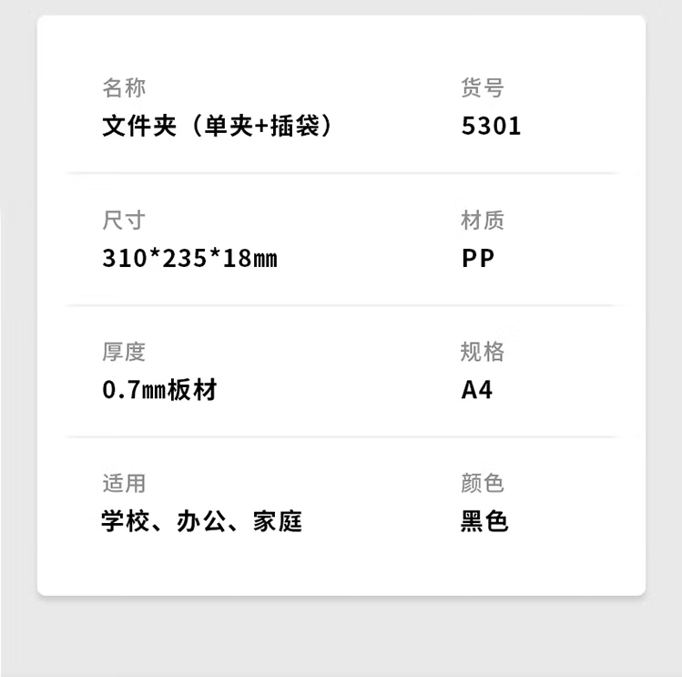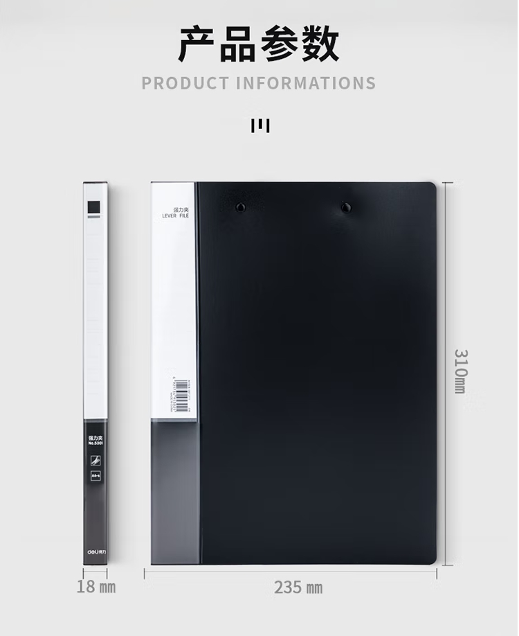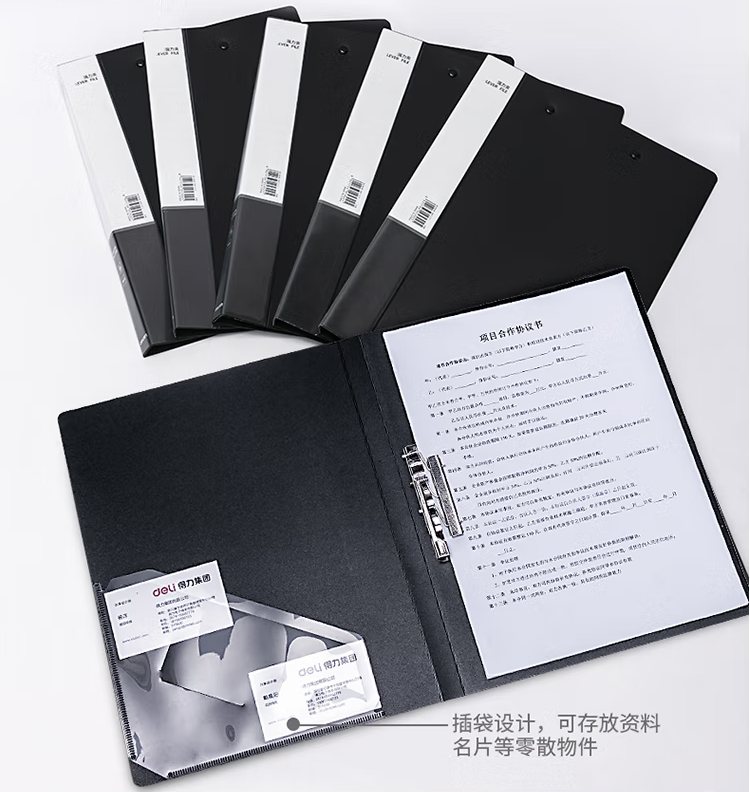 得力(deli)A4金属单强力夹+插袋 5301黑色 单只