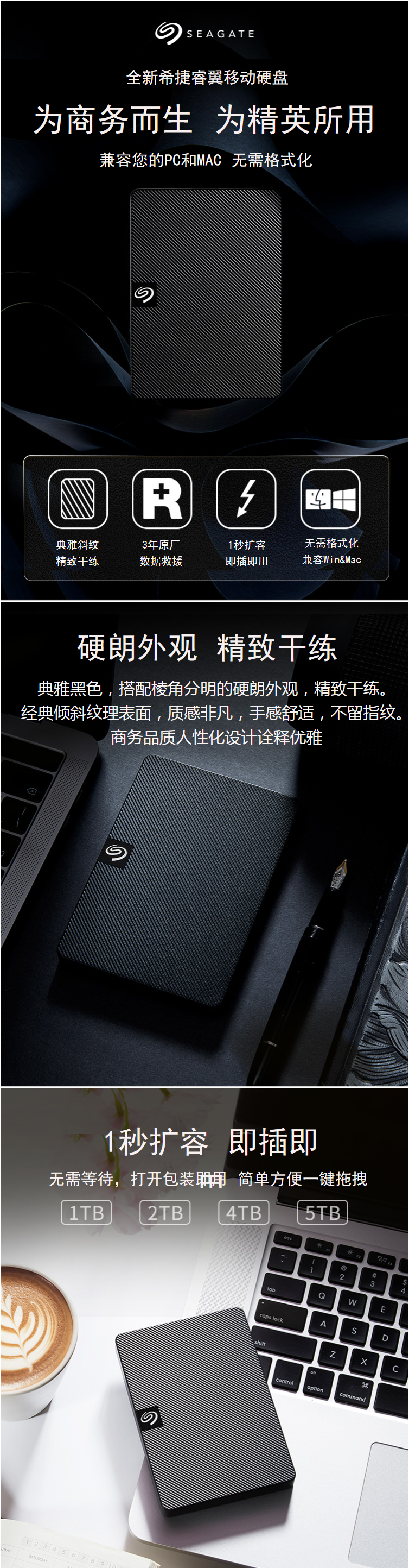 希捷(seagate)Expansion 新睿翼1TB USB3.0 2.5英寸移动硬盘经典黑(STEA1000400)
