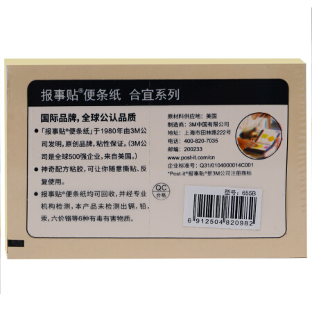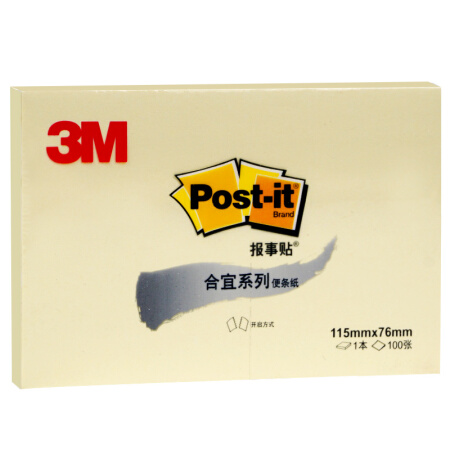 • 3M 便利贴 报事贴/便条纸/报事贴/便签纸/便签本 办公文具 合宜系列655B(黄色)