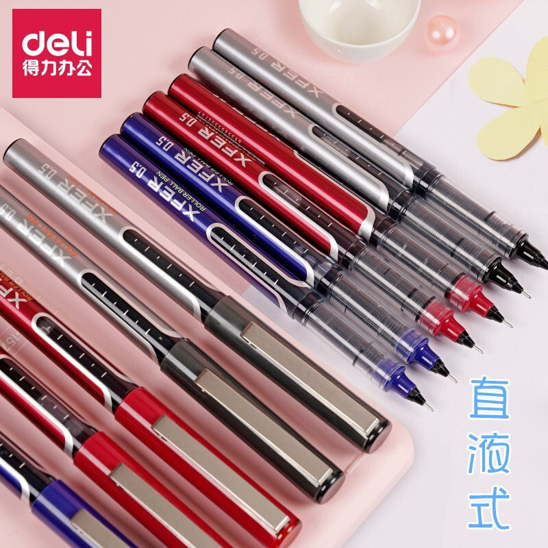 • 得力(deli)直液式中性笔 针管笔 签字笔 水笔0.5mm办公学生文具【全针管黑】12支/盒S657