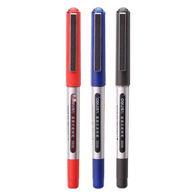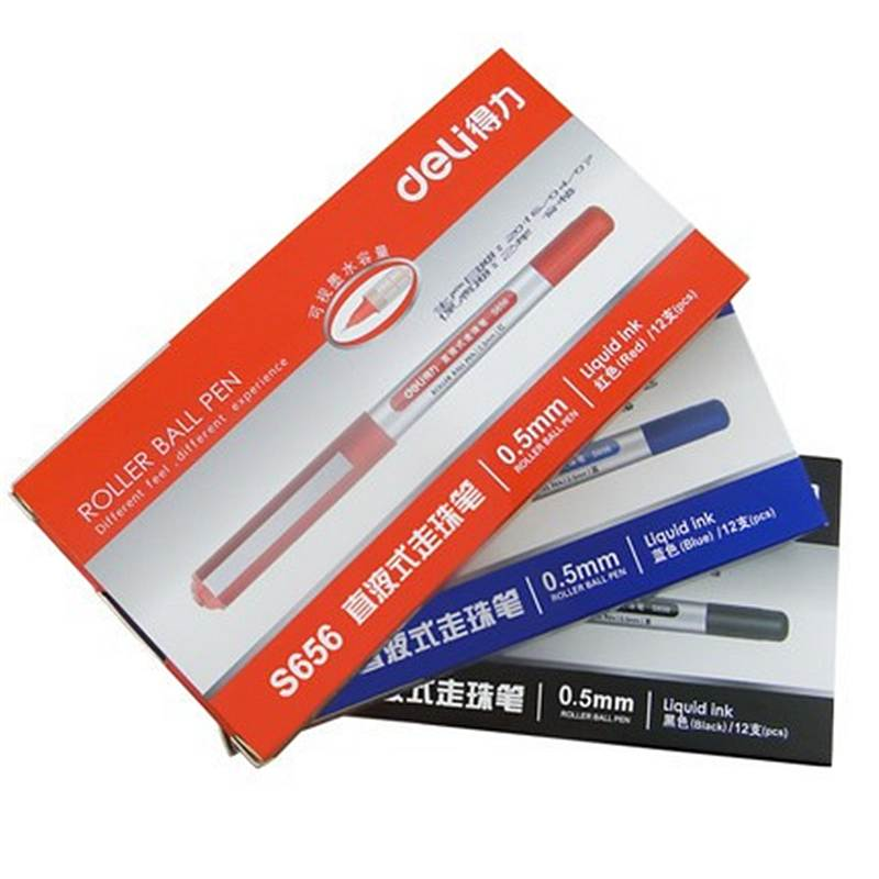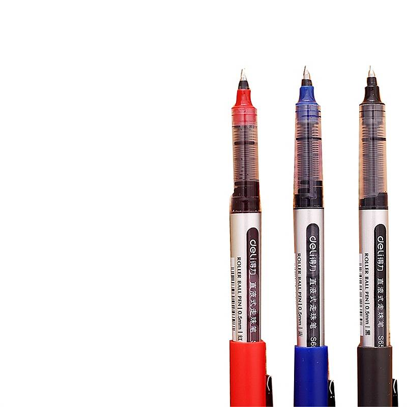 得力(deli)0.5mm蓝色直液式走珠签字笔学生考试中性笔12支/盒S656