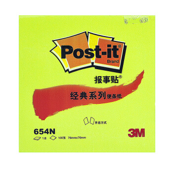 3M 荧光色报事贴便签纸 彩色便条纸贴学生文具醒目告示报事贴 654N 绿色