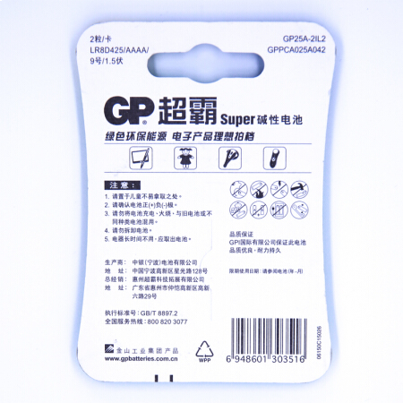 超霸(GP)9号碱性电池25A 2粒装