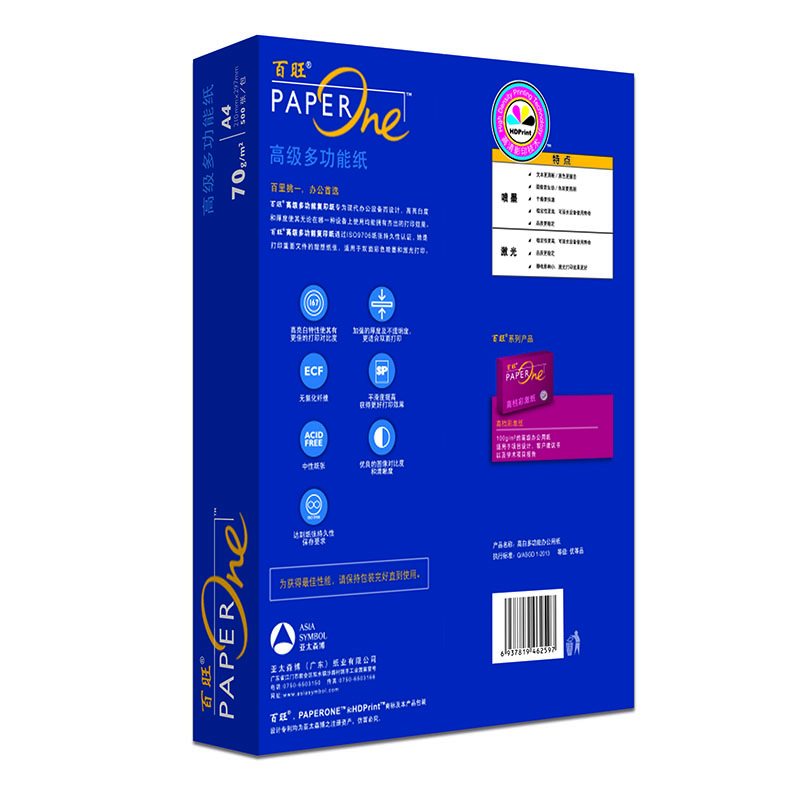 百旺高级多功能复印纸是亚洲区第一个采用HDPrint™ – 高清影印技术的办公用纸品牌;专为现代高速激光打印机和商务喷墨型打印机/复印机而计设;文本更清晰,图像更亮丽,干燥更快速