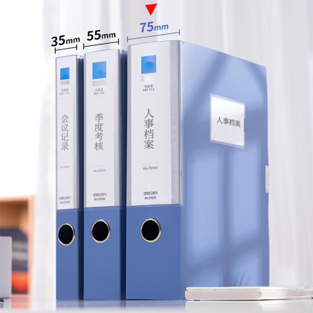得力(deli)10只75mm加宽塑料档案盒 加厚文件盒 党建资料盒 财务凭证收纳盒 办公用品27037蓝色