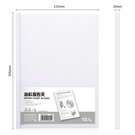 得力(deli)10只A4透明抽杆文件夹拉杆夹 简历报告夹资料夹33223白色