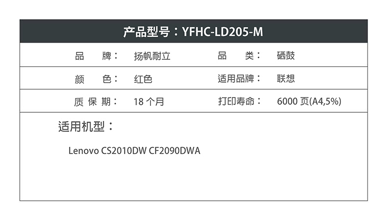 扬帆耐立 LD205红色硒鼓 适用联想Lenovo CS2010DW/CF2090DWA-商专版