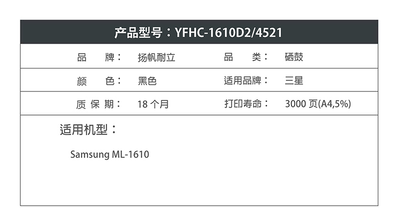 扬帆耐立1610D2硒鼓适用三星1610 2510 4521F 4321 施乐3117 3124-商