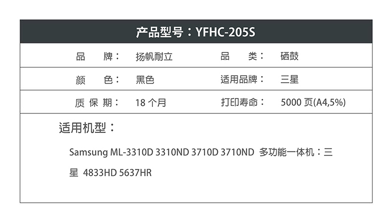 扬帆耐立205S硒鼓粉盒适用三星3310ND 3710ND 4833HD 5637HR-商专版