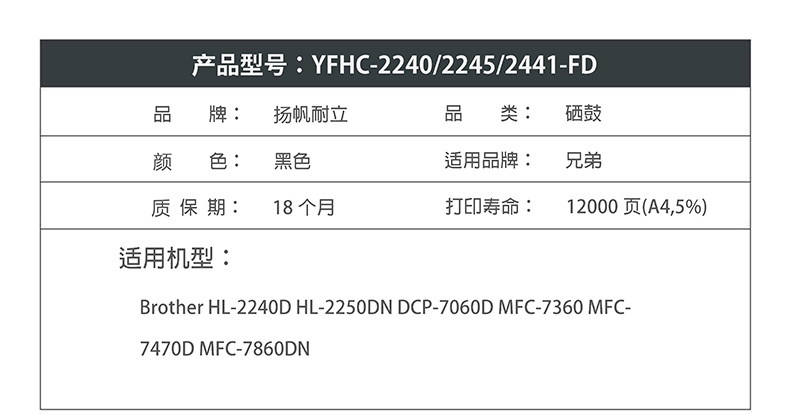 扬帆耐立DR2240/2441硒鼓组件 适用于兄弟7060 7470-商专版