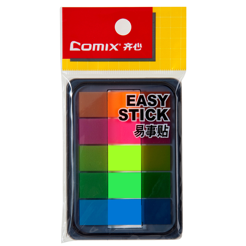 齐心(Comix)3个装荧光膜指示标签/便签条/便利贴/百事贴(44x12mm)20张*5色办公文具D7012EC
