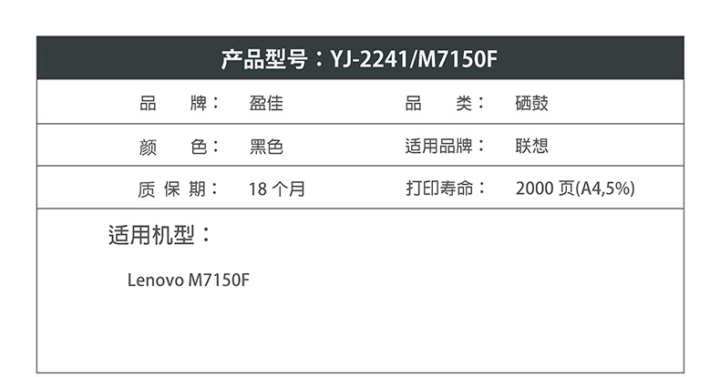 盈佳LD2241/M7150F硒鼓适用联想M7150F-商专版