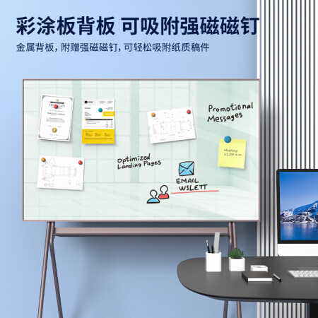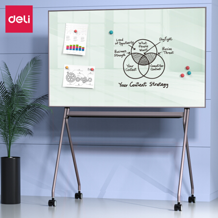 得力(deli)芭蕾支架玻璃白板 150*90cm稳固型磁性钢化玻璃带架子白板办公会议白板 50071