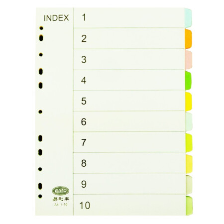 易利丰 分页纸 隔页纸 分类纸 index索引纸 文件夹活页纸 纸质塑料数字英文三孔夹专用 【有孔】10色分页纸50张1包 (1-10)