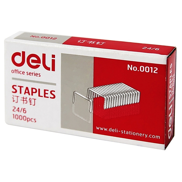 得力 0012 订书钉 24/6 1000枚/盒 (单位:盒)