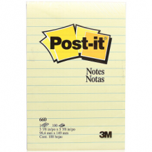 3M Post-it报事贴 660 报事贴单行簿 黄色横线便条纸 告示贴 4*6 便签本