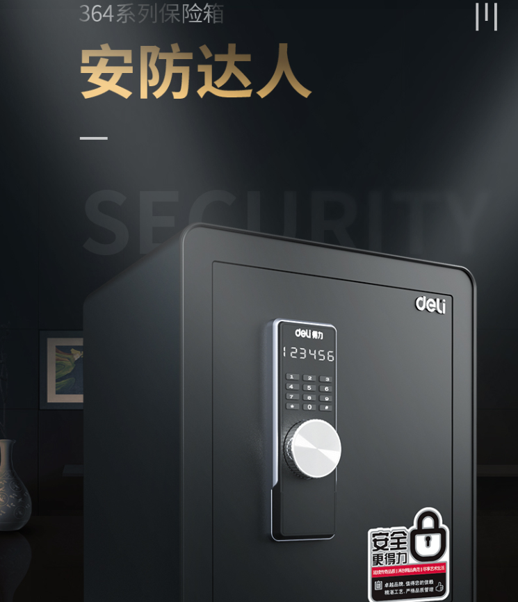得力(deli)保险柜 高45CM 电子密码保管箱 办公家用保险柜 H450 (黑色) 3643S