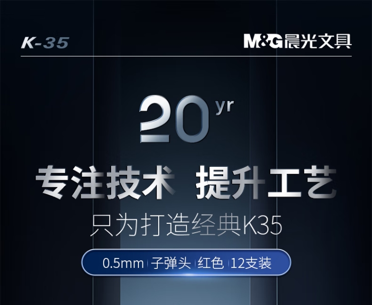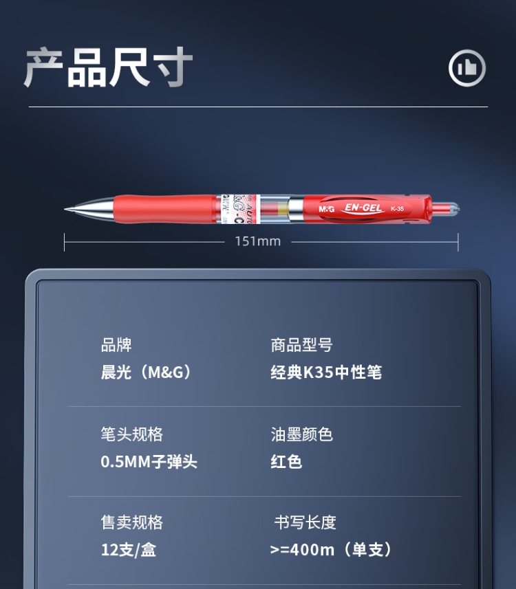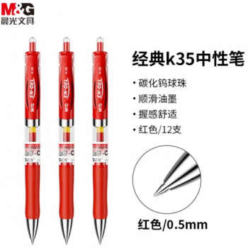 晨光(M&G)文具K35 按动中性笔 0.5mm 红色 12支/盒