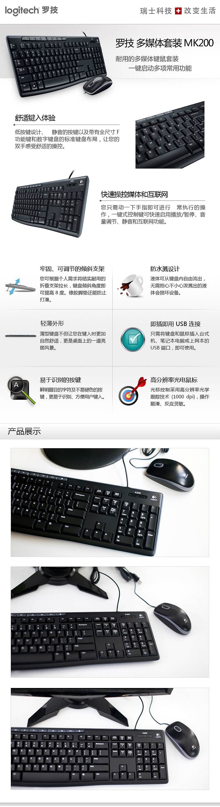 罗技 MK200 键鼠套装电脑键盘 (单位:套) 黑色